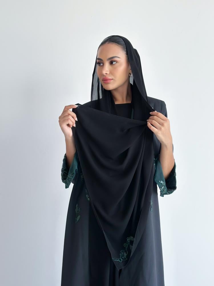 الملحقات : طرحة سوداء مضاف لطرفها تطريز